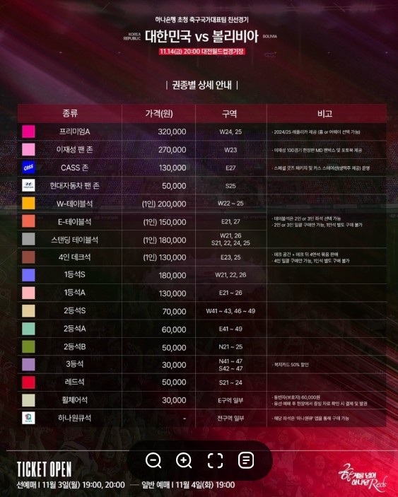 - 오후 8시 킥오프. 티켓 11/7 일반 오픈.